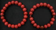 を指し、非常に希少です。左は親玉無しの主玉のみのスタンダードブレスレット。右は親玉・間玉に瑪瑙琥珀(再生琥珀)材料を使用したオリジナルブレスレット。