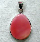 特に色が美しいコンク貝(コンクシェル)の表面部分を厳選加工.。独自加工で表・裏で色彩の異なりが見受けられる。当方独自ホワイトゴールド(14K)加工。限定一品限り。現在では通称ワシントン条約で規制がかかる貴重材料となった一品。