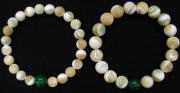 親玉は濃緑色の本染め翡翠。夜光貝のみのブレスレットの場合8mm×23粒で