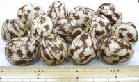 ブラジル産。弊社で原実の皮を荒磨きをして加工しやすいように一部取り除いた象牙椰子の実の皮取り済み販売。印材、重し(風鎮)、彫り物、根付、置物その他工芸品に向いている硬い実で有名な象牙果(象牙椰子)原実の