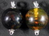 ブルーアンバー ペンダント(左丸玉/右多面カット型)