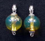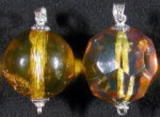 右のみ穴あけ加工済み(左も穴明け加工サービスにて可能です。また、ペンダント仕様に枠・フックのお見積も承ります。)。当ドミニカンブルーアンバーペンダントトップは人気の金色クリアな不純物の少ないブルーアンバーを使用した希少な一品です。国内第三者機関の天然琥珀