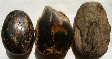 @琥珀の成り立ち 琥珀は一般に松柏科植物の樹液が石化したもので、この木は約2000万年〜6000万年前の新生代第三紀に繁茂したパイナス・スシニフェラという種の木で、現在のスカンジナビア半島東南部からバルト海ボスニア湾辺りで、豊かな針葉樹林帯を形成していたとされています。 ![]() ドミニカ共和国産出琥珀(甲虫入り) @琥珀の特性 塊状で透明なものほど比重は大きく、密で硬いですが、もろくなります。熱に対し、150℃で軟らかくなり、300℃で溶解します。その時針葉樹特有の香りを発し、容易に燃焼します。この為、古代から寺院や教会では琥珀の香を燃やし、また、エチオピア人は死体をミイラにするのに琥珀を用いていました。琥珀は帯電性があり、熱を伝えにくい性質を持っています。琥珀独特の特質は、感触の暖かさ・軟らかさ・軽さです。(広葉樹である青琥珀なども同様に特有の香りや上記の特性を持ちます。) ![]() マダガスカル共和国産出琥珀(蜉蝣入り) @琥珀のいわれ ギリシャ神話等では、ハッピー・ストーン、サン・ストーン、マーメイド・ティアーズ(人魚の涙)といわれ、昔から幸運を呼ぶものと信じられてきました。イギリスの<琥珀婚>(結婚10年目に琥珀を送ること)をはじめ、欧州では「幸福を送る」という意味の「琥珀を送る」行為は「長年の愛の花を咲かす」とされています。 ![]() ドミニカ共和国産出琥珀(羽蟻入り) 当方扱いの各種琥珀の説明 当方扱いの琥珀の種類は多種に渡りますが、当方の扱っている代表的な琥珀として、@北京金琥珀A撫順琥珀(紅琥珀もその一種)B虎琥珀C蜜蝋虎琥珀D老琥珀Eバルト海琥珀(旧ソ連琥珀も含む)Fポーランド金琥珀Gコーパル(コパル/若年琥珀)H香琥珀I虫入り琥珀等があります。(青琥珀・緑琥珀・虹琥珀はブルーアンバーの説明ページをご参照下さい。) @金色で透明な琥珀 A中国撫順地方が産地で、半透明及び不透明な紅茶色/黒茶色または黒の胡麻斑点が中にあります。赤いものを紅琥珀とも呼び、古い名前では、満州紅琥珀とも言います。 B色目が虎の縞目模様と似ているためこの名前がついています。一級品はこのまだら模様が黒地色に対し、多く出ているものとされます。 C琥珀模様が白茶色で、まだらが多いものが最高級品の蜜蝋虎琥珀と呼ばれます。 D他の琥珀と比べ経過年代が古く、材質としては琥珀の中で特にもろくなっており、色目は紅黄色またはオレンジ色で半透明または不透明でなかなか手に入れることができない高価で貴重な琥珀です。 E様々な色がありますが、当方では乳白色のものが多く好まれます。旧ソ連時代では、ソ連が一括して輸出していたため種類によってはソ連琥珀とも呼ばれます。 Fソ連に近いため、この種の琥珀はソ連琥珀と同じような色目が多いのですが、金琥珀もあります。 G産地としてはドミニカ共和国/マダガスカル共和国などで産出されます。年代的には約500万年前のもので、まだ一部琥珀に成りきっていないものもあるため、ヤングアンバーとも呼ばれています。美しさは他の種類の琥珀と変わらず、柔らかい構造と琥珀に比べて分子構造が不安定である特徴を持っています。 H香琥珀(Fragrant Amber)とは琥珀の中でも特に香り高く、市場において高価で取引される琥珀です。象牙のような白蜜蝋色が入るのが特徴ですが、最も特徴的なのが摩擦や燃すことでその琥珀の中でも特に清らかな松香がすることです。一般にはあまり流通しない一品です。 I虫入り琥珀とは一般に2,000万年〜5,000万年前の時代、針葉樹樹脂が樹皮上を流れている時に昆虫が樹脂の中に誤って入ってしまい、そのまま数千万年をかけて固まり、琥珀の中に昆虫が入っている状態で発見されます。地球の気候変動等により、琥珀産出地域での虫入り琥珀は採掘量が少ないです。コパル(若年琥珀)は約500万年前に生成されたものを指しますが、地球の温暖化と産出地域が温暖であったため、昆虫も活発に動き回り、虫入りコパルは一般の虫入り琥珀よりも採掘量が多いです。その点、虫入りの琥珀は採掘量が少ない為、気候学・生物学・地球科学上価値があるといえます。特に数千年前の当時に実際に生きていた昆虫が琥珀の中に閉じ込められていたために保存状態が良く、進化等研究する昆虫学研究者からも虫入りアンバーは一目置かれています。 ![]() ![]() ポーランド産出香琥珀(Fragrant Amber)の原石 ![]() メキシコ産出虹琥珀(レインボーアンバー)とユカタンブルーアンバー ![]() ユカタン半島地域産出緑琥珀とユカタン青琥珀 ![]() ドミニカ共和国産虫入り琥珀 (琥珀に閉じ込められた為、昆虫の保存状態が良く、羽等細部まではっきりと見られる。 写真画像の下部にも小さい昆虫が見受けられる。) ![]() フィリピン産出琥珀の原石等 (フィリピン琥珀はロシア琥珀やビルマ産琥珀であるバーマイトの約9,000万年前のものとは異なり、約500万年前〜約2,500万年前のものと考えられる。採掘場所や年代層によっては原石の中にコパールと琥珀が混じっているものがあ