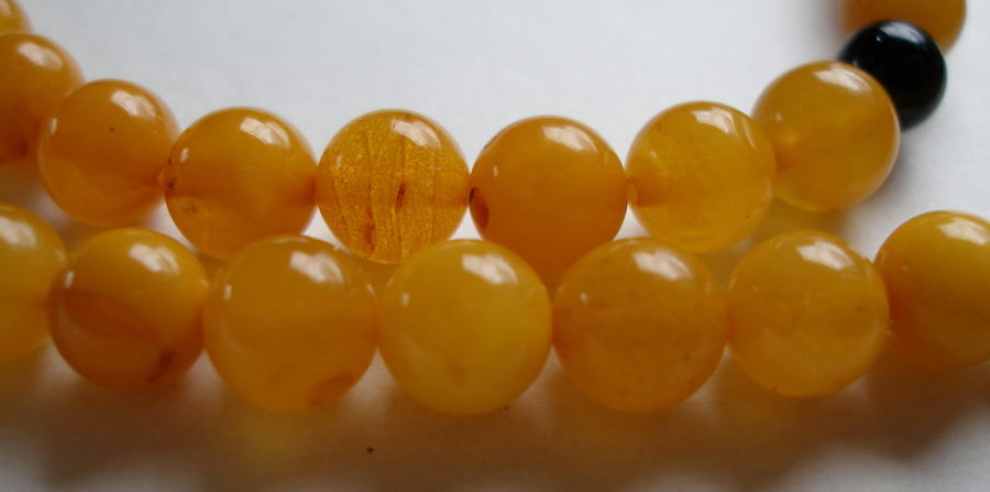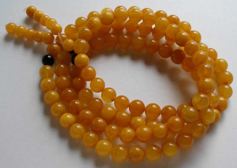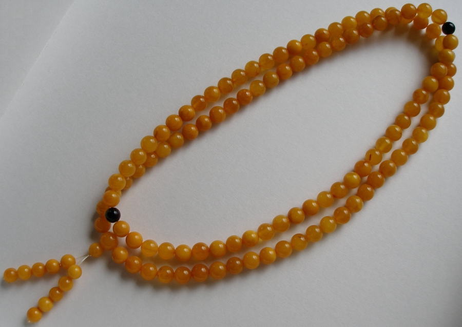 非常に珍しい老琥珀原材料を使用してビーズカットした、特大の老琥珀ビーズタイプ念珠です。