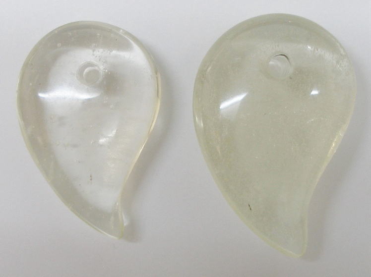 天然ガラスであるリビアングラス(リビアンディザートグラス・リビア砂漠ガラス)の原石のうち、およそ80%〜90%クリアな原石を選別して勾玉(曲玉)にカット加工した優品質な珍品です。