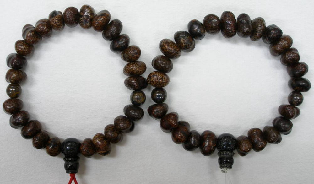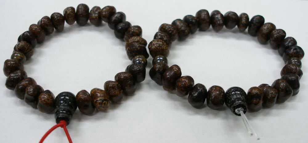 右側は透明のシリコンゴム糸を使用した古星月菩提樹の原実のブレスレット。