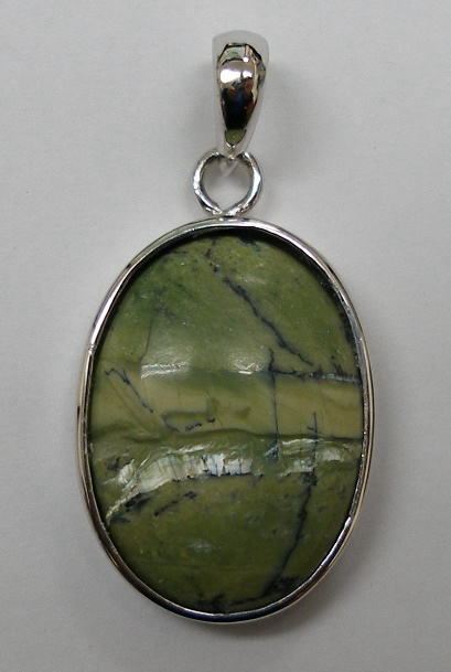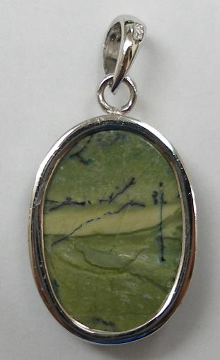 ブラジル産出の天然グリーンオパール原石をそのままシルバー925(純銀92.5%)ペンダント加工した珍品です。 中央部分やや上・やや下箇所の層が輝いています。 前の天然オパールブレスレット・天然オパールペンダント等天然オパール商品ページへ 日昇堂トップページへ