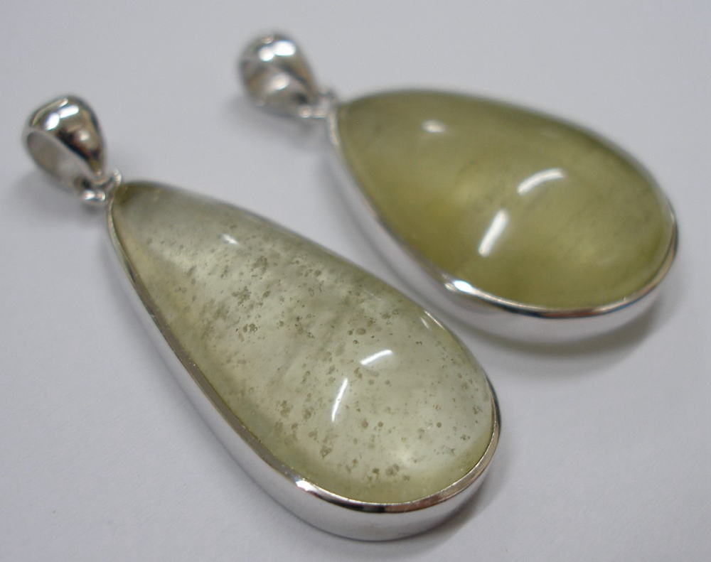 当リビアングラス雫型ペンダントトップ(リビアンディザートグラスペンダント・リビア砂漠ガラスペンダント)は透明感がある部位と乳白色の部位、内包物がある部位が見受けられるリビアングラスを端的に表している珍品です。