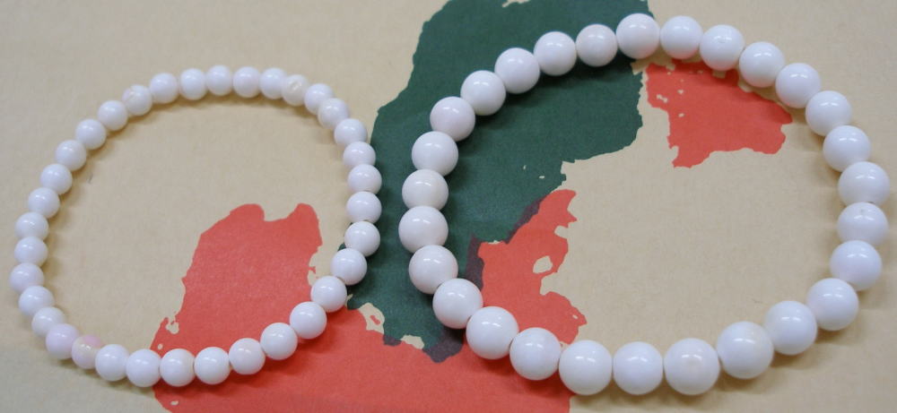 天然のコンク貝(コンクシェル)を用いたコンク貝ブレスレットです。 ビーズによってコンク貝の表面にある淡いピンク色が観察することができます。 なお、コンクシェルの貝殻の内部はご覧のとおりの白ないし白クリーム色をしております。 前の鮑(アワビ/鰒)・夜光貝・真珠・コンク貝商品ページへ トップページへ