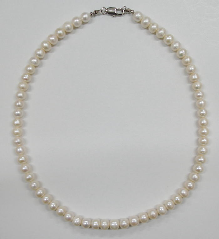 自然の淡水真珠を使用したネックレスです。 表面に生育中に生じた凹みがあるビーズは有りますが、普段使いに気軽に利用でき、重宝する逸品といえます。 前の鮑(アワビ/鰒)・夜光貝・真珠・コンク貝商品ページへ この商品のお問い合わせはこちら(質問フォーム)をクリック。 この商品のご注文の場合はこちら(注文フォーム)をクリック。 トップページへ